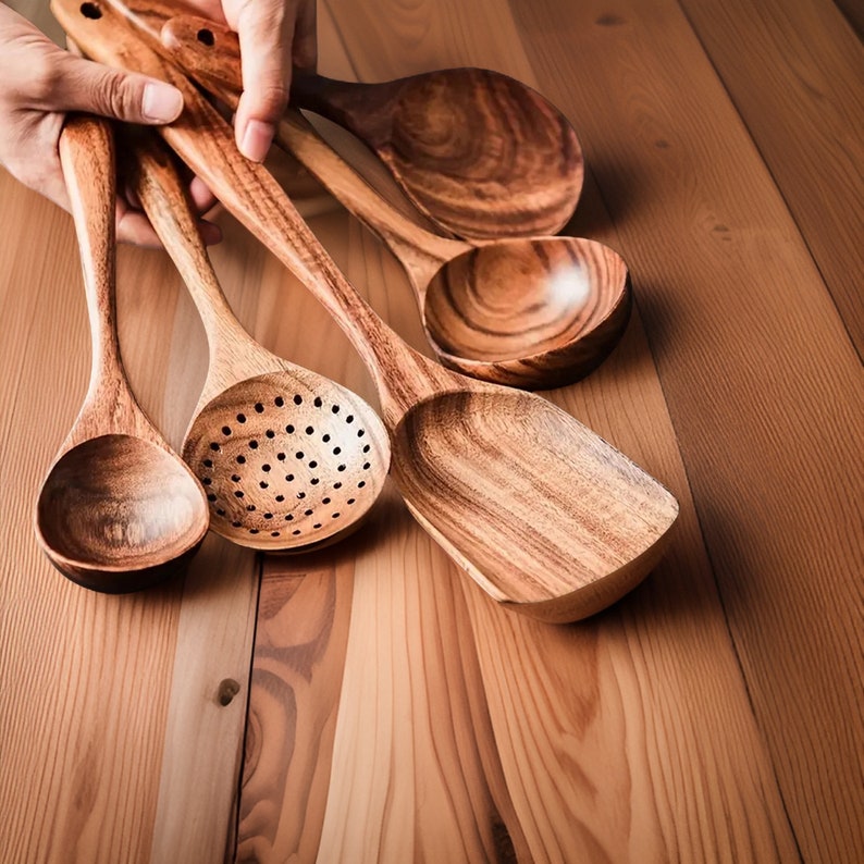 Premium Teak Wood Kitchen Utensil Set | 5/7 Piece Set | Wooden Cooking Spoon Set | Natural Wooden Utensil Kitchen Set | Wood From Slovenia
