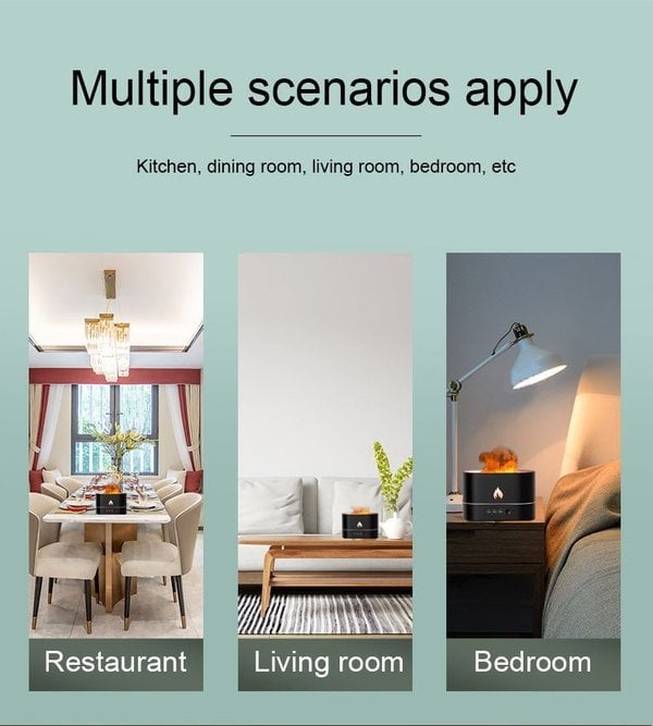 A realistic flame effect can be generated by the fire(smart LED lights) and the cool(mist from the diffuser). With this Essential oil diffuser at night, like sitting near a fireplace, you will feel really relaxing and healing.