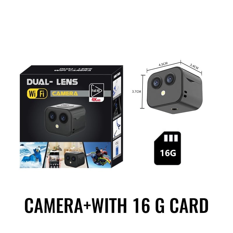 - Package includes:New Product Q12Hd 4K Dual-Lens wifi Camera+With 16/32/64 G card
