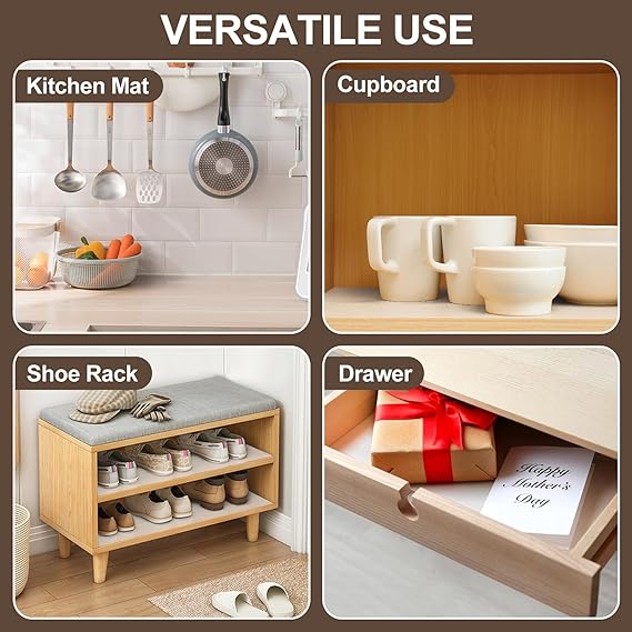 - Non-adhesive & Removable: This shelves liner is easy to install and remove, leaves no sticky residue on your furniture. Protect shelves, drawers, and cabinets from scratches, stains, and other damage.