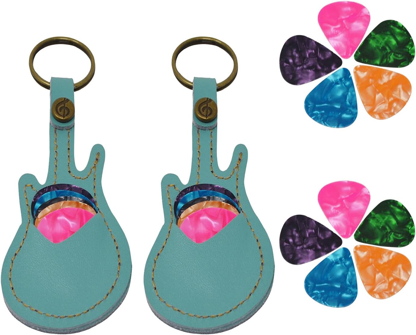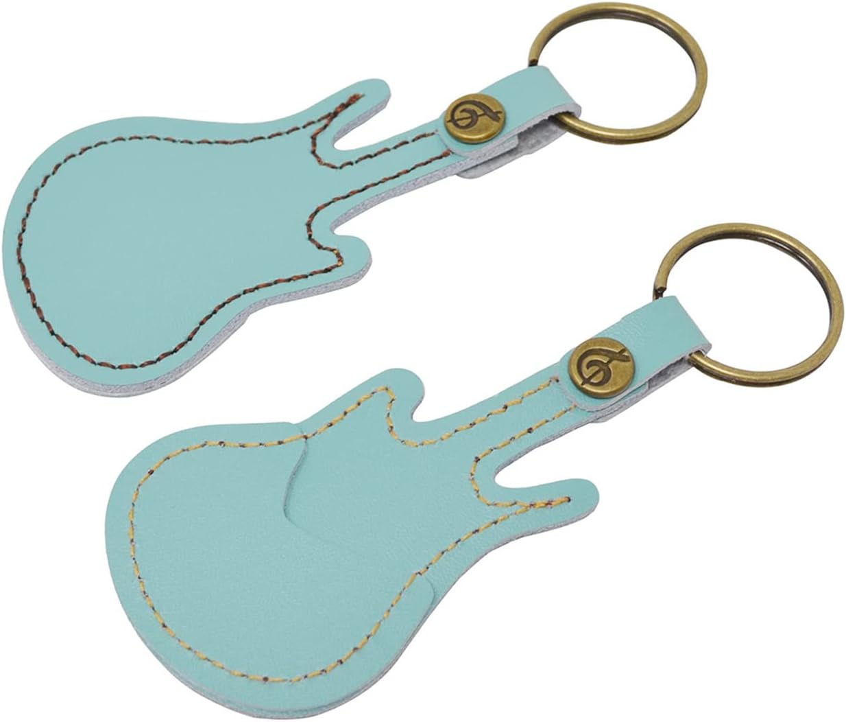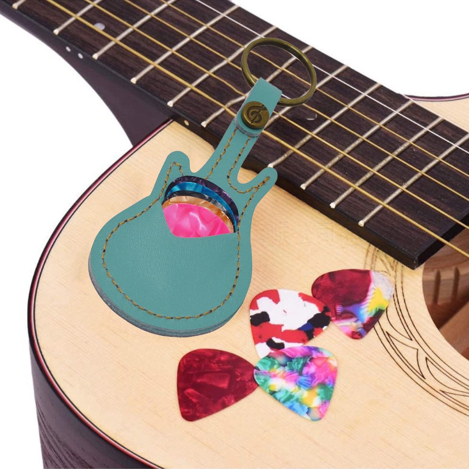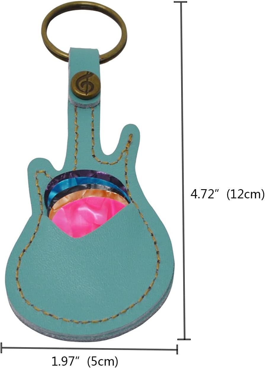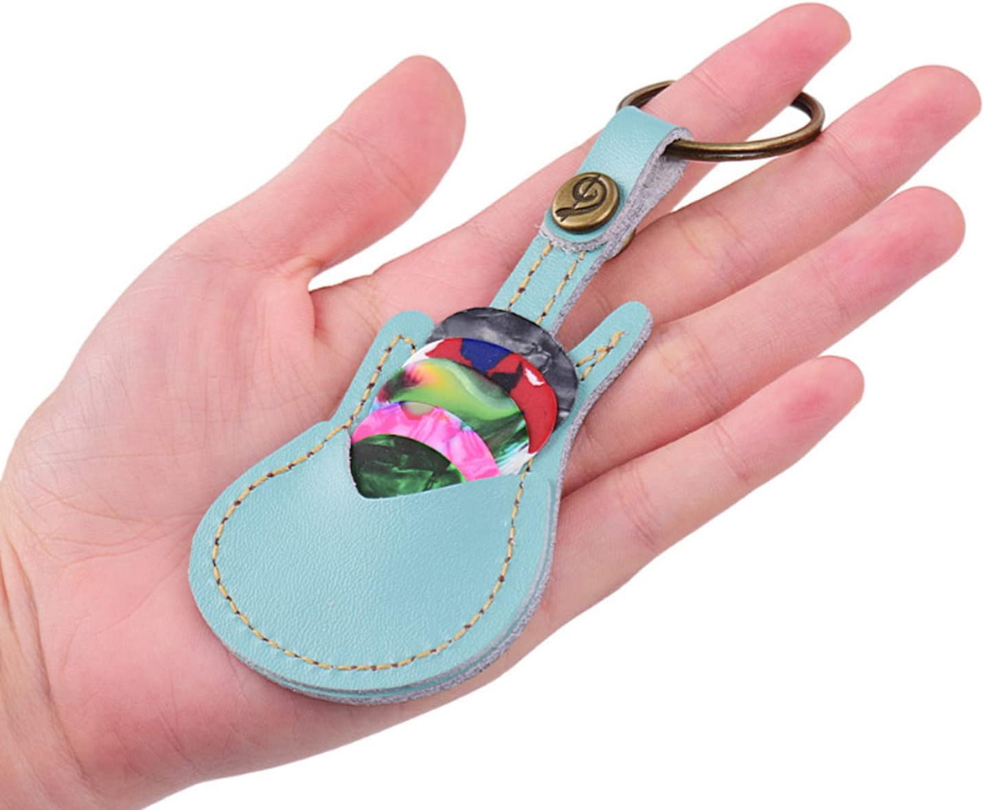 This guitar picks case, with a creative shape, unique and beautiful, is an ideal gift for every guitar player. This guitar picks case is made of high-quality leather, exquisite workmanship, durable, not easy to fade, easy to clip the guitar picks on the key, convenient and quick. Small size and large capacity: Guitar picks cases are suitable for picks of various sizes, and can accommodate up to 10 picks. The keyring is designed to be easy to carry around for various occasions. This package includes: 2 light leather pick case (color light blue), 10 pcs free guitar picks (the pick color is not fixed and will be sent randomly).