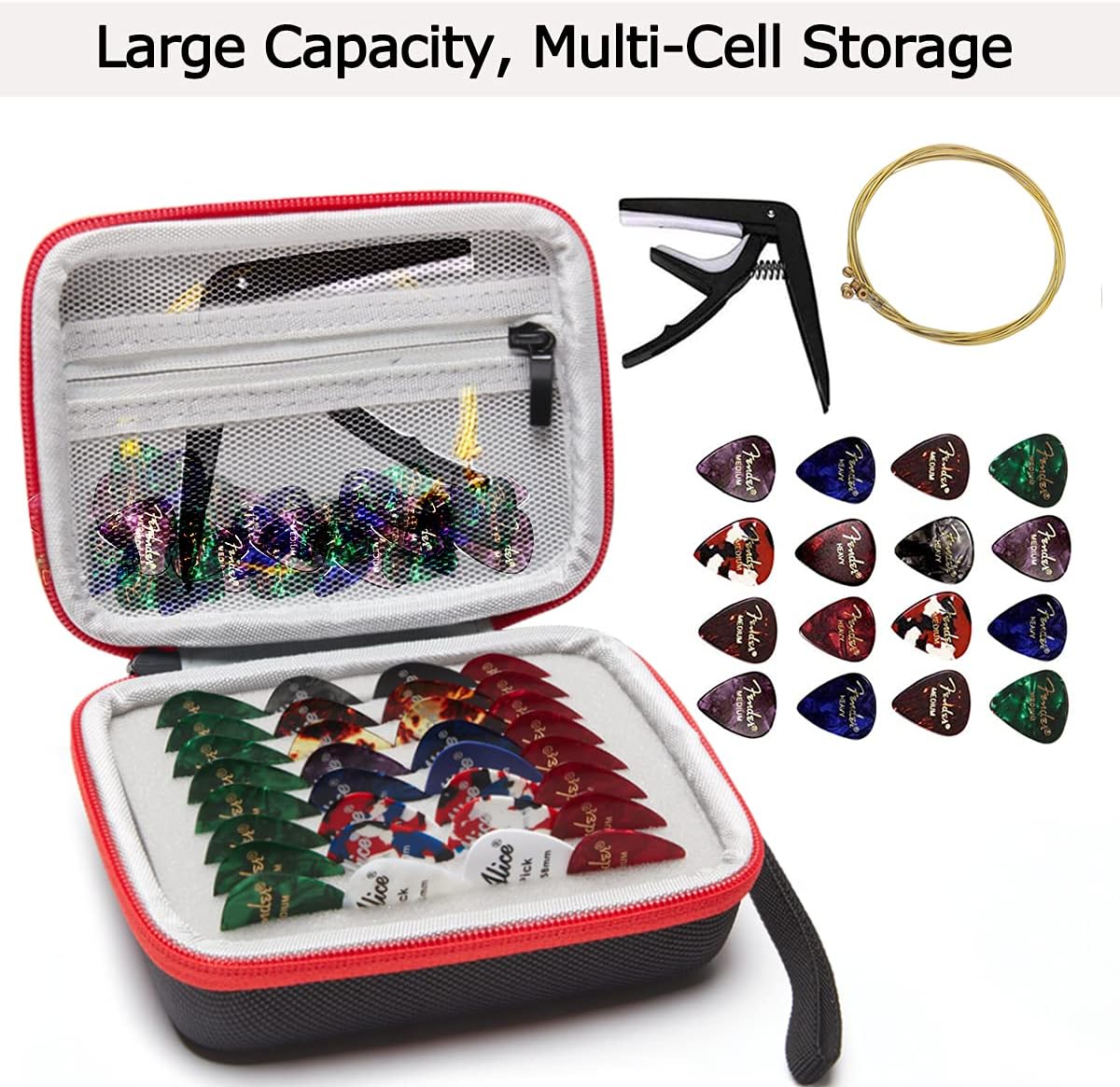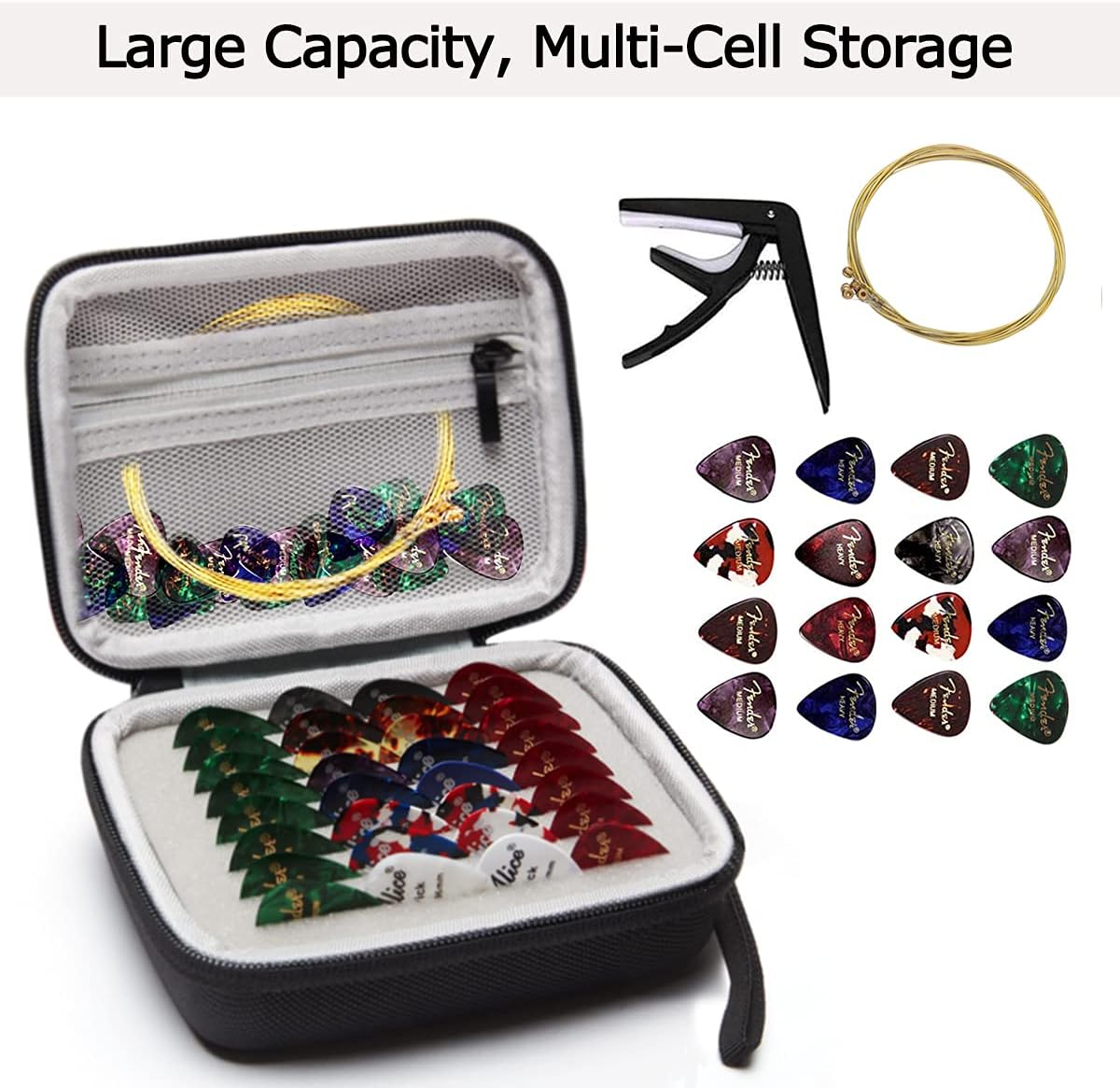 - Large Capacity: With dimensions of 5.5 inches x 4.5 inches x 2 inches, this storage case can hold more than 50 picks. It offers enough space for all your picks, strings, and capo, keeping your guitar accessories well-organized and protected.