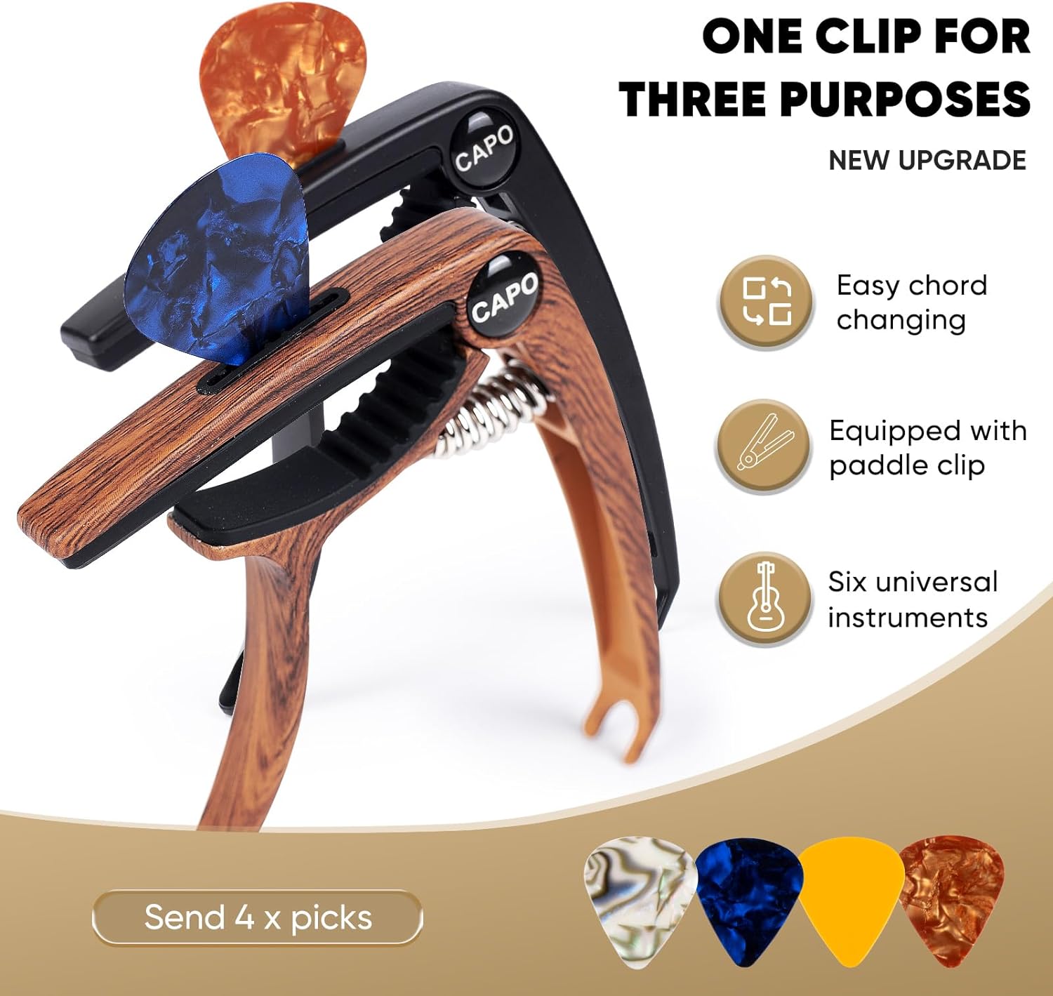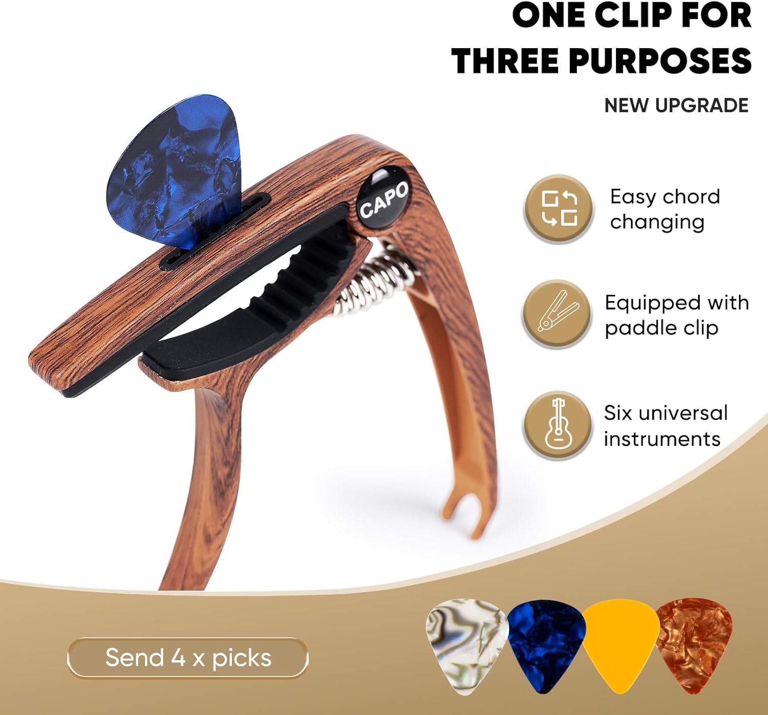 - 【Included accessories】 Includes: 1 x Guitar Capo, 4 x Guitar Picks