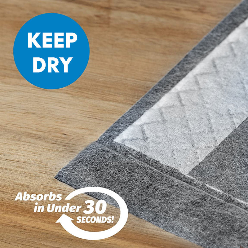 - PEE PADS THAT ABSORB 2x as much, 2x as fast, so you never come home to ruined floors