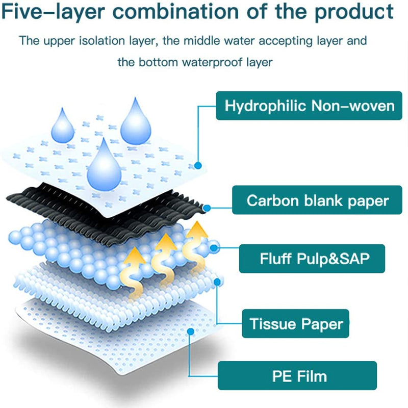 - Material: Hydrophilic non-woven fabric, wood pulp cotton, polymer, activated carbon paper, PE cast film