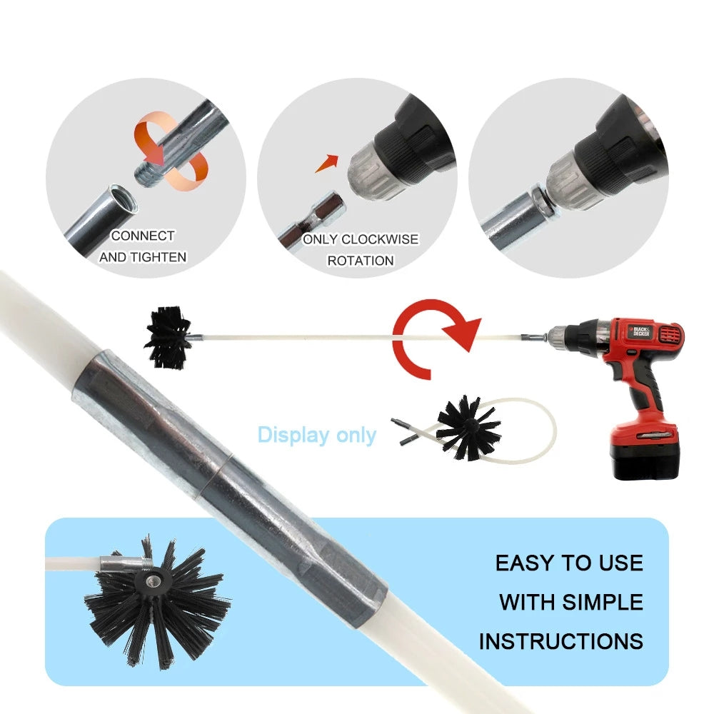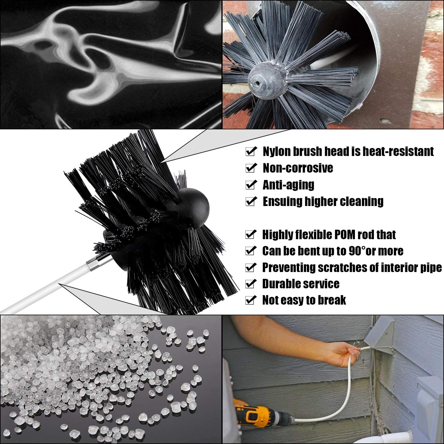 【Efficient dryer lint brush】Our dryer vent cleaning kits extremely durable, flexible and will bend with ease. Just align the joints of the two poles and rotate them clockwise until they are tight. Easy to connect and retract. Can withstand more than 90 degrees of curved pipeline, use or do not use electric drill to rotate with homeopathic needle, quickly & easily clean the dryer vents from inside or outside of your house. To help you get professional results.
