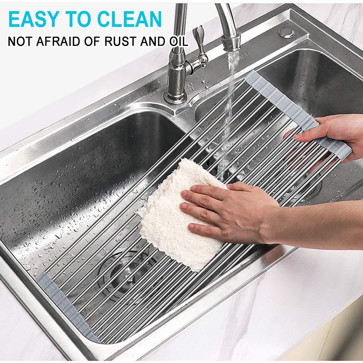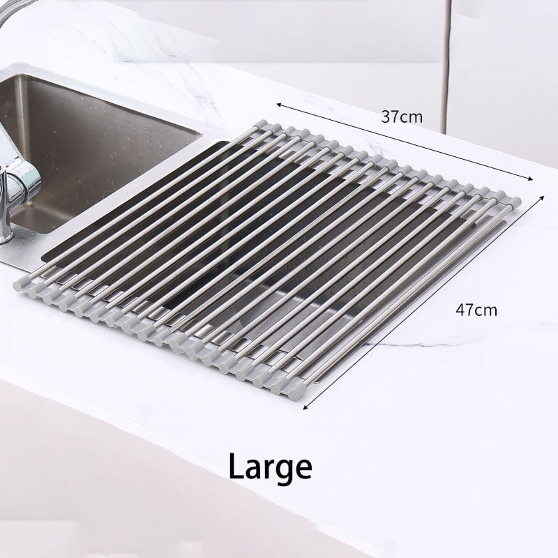 - VERSATILE COUNTER TOP: It can be used as a handy colander for vegetables and fruits, or a wonderful defrosting rack for meat and fish under running water. Water drips off your dishes and straight into the sink, no more watery messes or wasted space on your countertops.