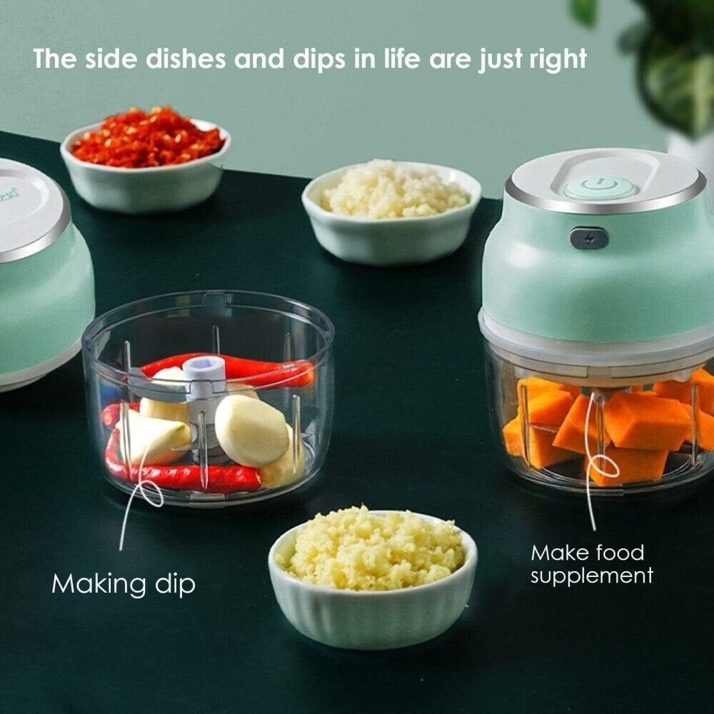 - 【Unique Experience】Great Kitchen Helper: Electric Garlic Press only need to press the button at the top to automatically stir, it will help you chop garlic, ginger, peppers, onions, nuts. Saving time and effort. (Note: Please cut the ingredients into small pieces before chopping them).