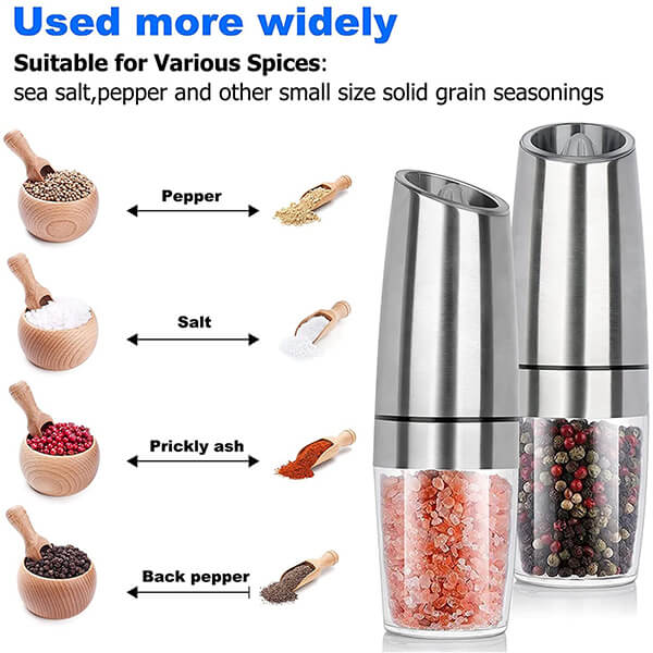 - Package includes: 1 x Automatic Electric Gravity Induction Salt and Pepper Grinder