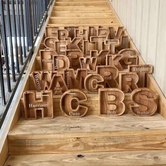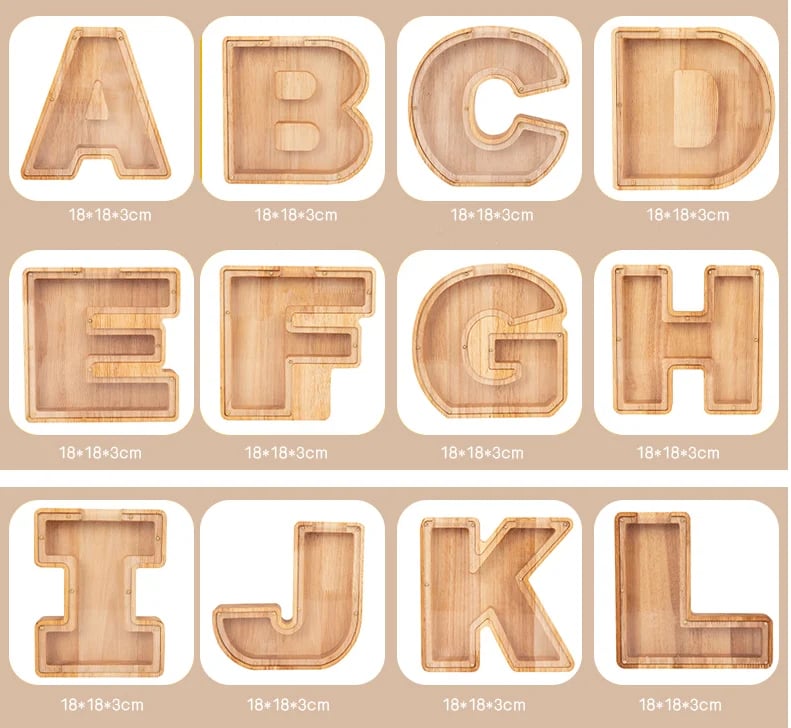 This kid's piggy bank is fun to save. You can choose from 26 letter styles, from A to Z.