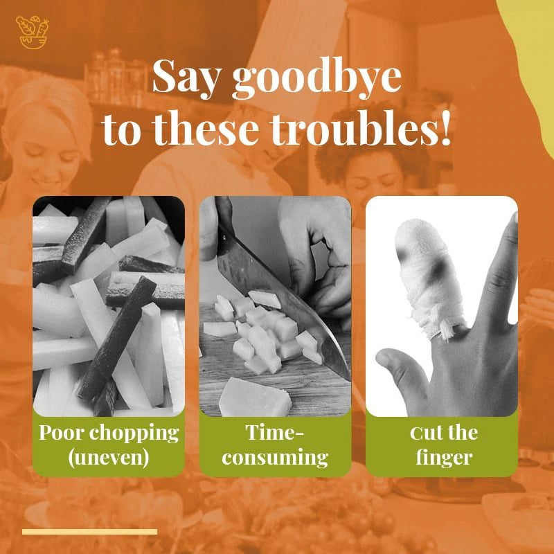 - Quickly Prepare Vegetables No need to cut frequently with a knife, just gently press the chopper, and vegetables can be diced or sliced. The diced vegetables are neat and square, which is more beautiful than hand-cutting.