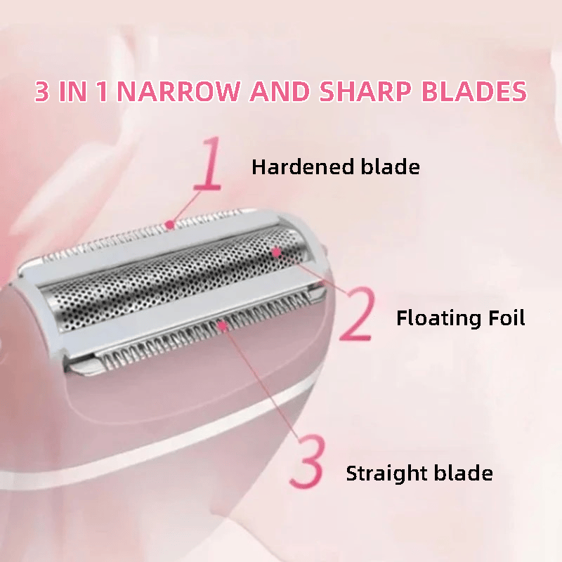 Effective and painless hair removal: Women's electric shavers are equipped with hypoallergenic stainless steel blades to prevent irritation, redness and cuts.