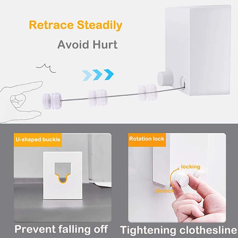 - Simple design, space utilization, can be placed in almost any space.The two parts of the clothesline need to be installed in horizontal and opposite positions.