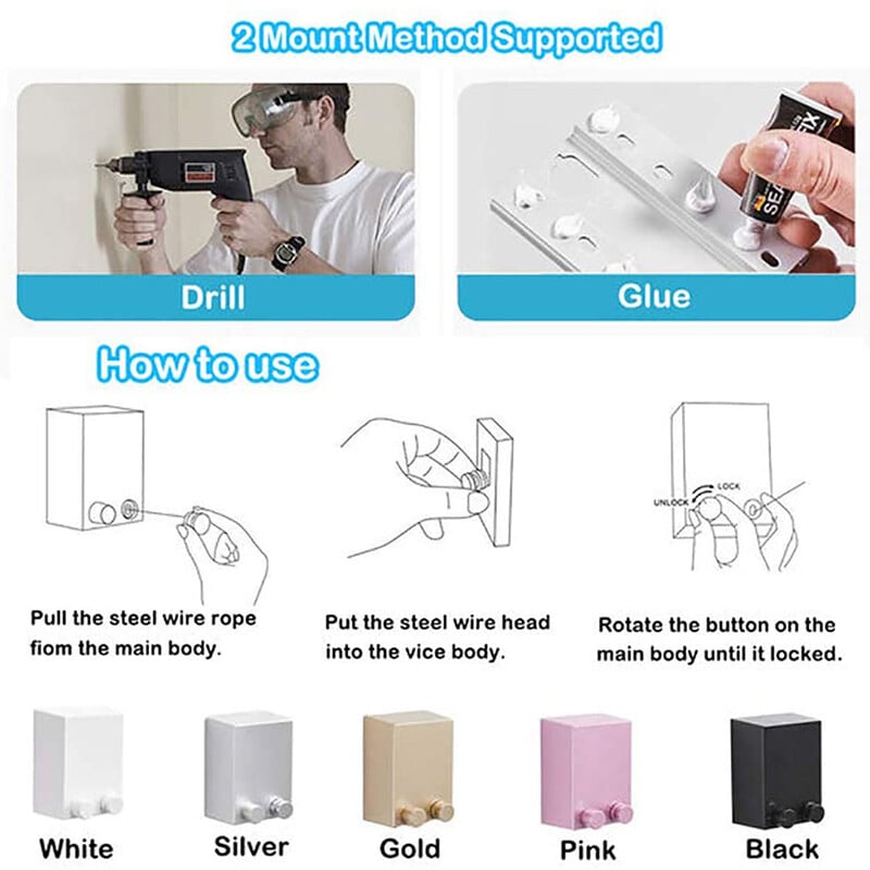 - Rotary switch design. After the switch is released, the wire rope can be pulled out.Remember to tighten the switch after pulling it out to prevent it from being pulled out automatically.