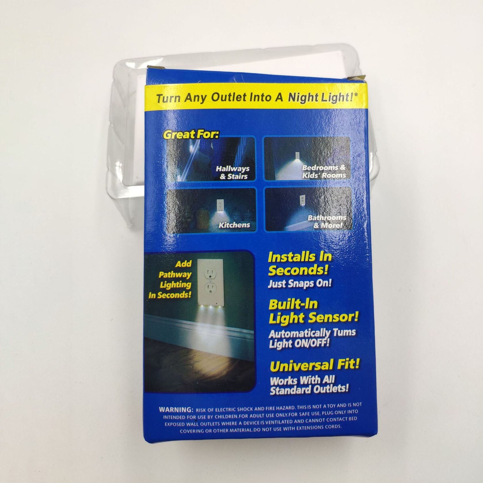 - This LED wall-outlet cover plate installs in seconds, automatically turns on/off and keeps sockets free for use.