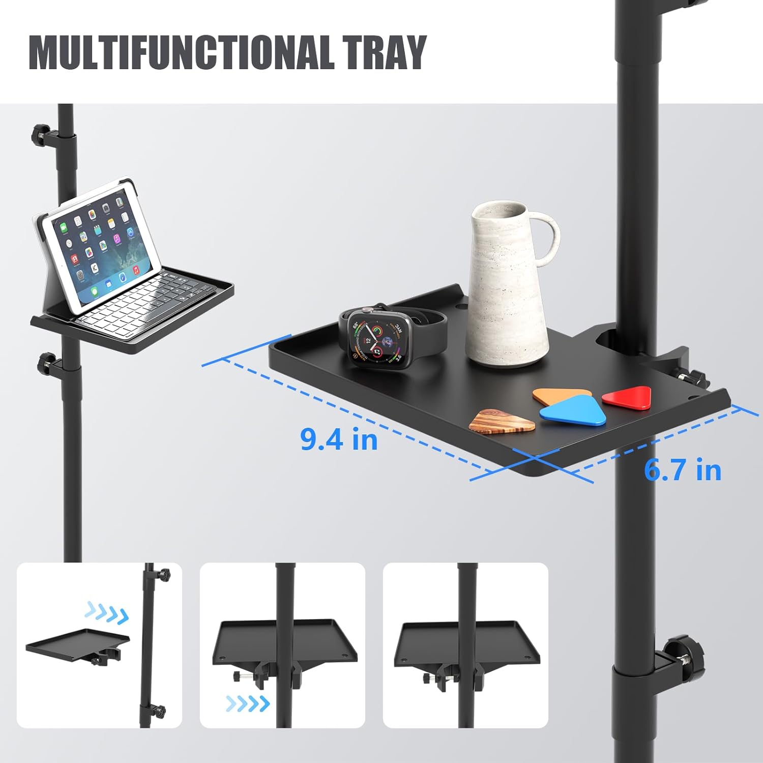 - 🎶With Clamp-On Rack Tray:Come with clamp-on rack tray holder to put accessories such as guitar pick,smartphone,water cup , pencil etc.Quick assembly and easy storage.