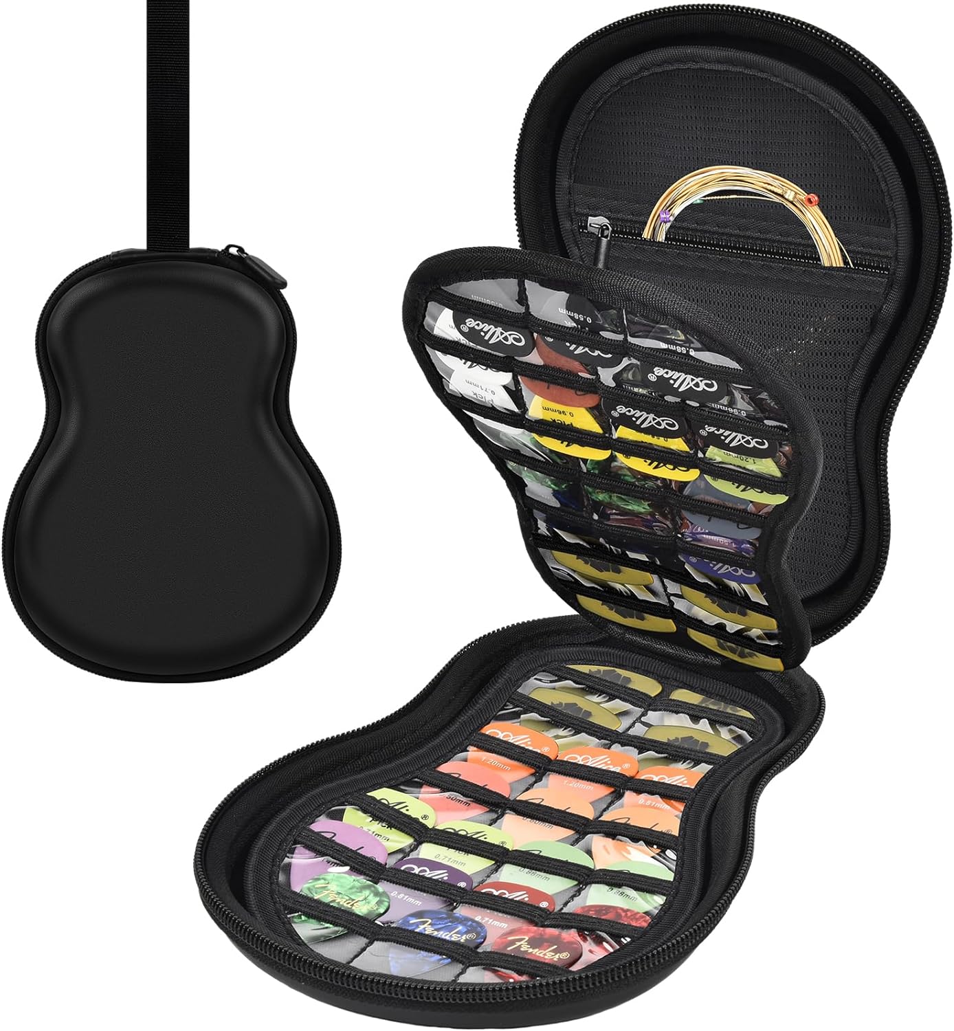 - Guitar&bass pick organizer: Guitar picks display Bag is made of high-quality EVA material, splash-proof, shock resistance, protect your guitar picks from external impacts. The sleek PU exterior for D'Addario picks box adds a smooth and exquisite texture, ensuring a comfortable feel. Whether you're playing at an outdoor gig or traveling to music festivals, the sturdy construction of the pouch ensures that your picks remain safe and intact throughout your musical journey.