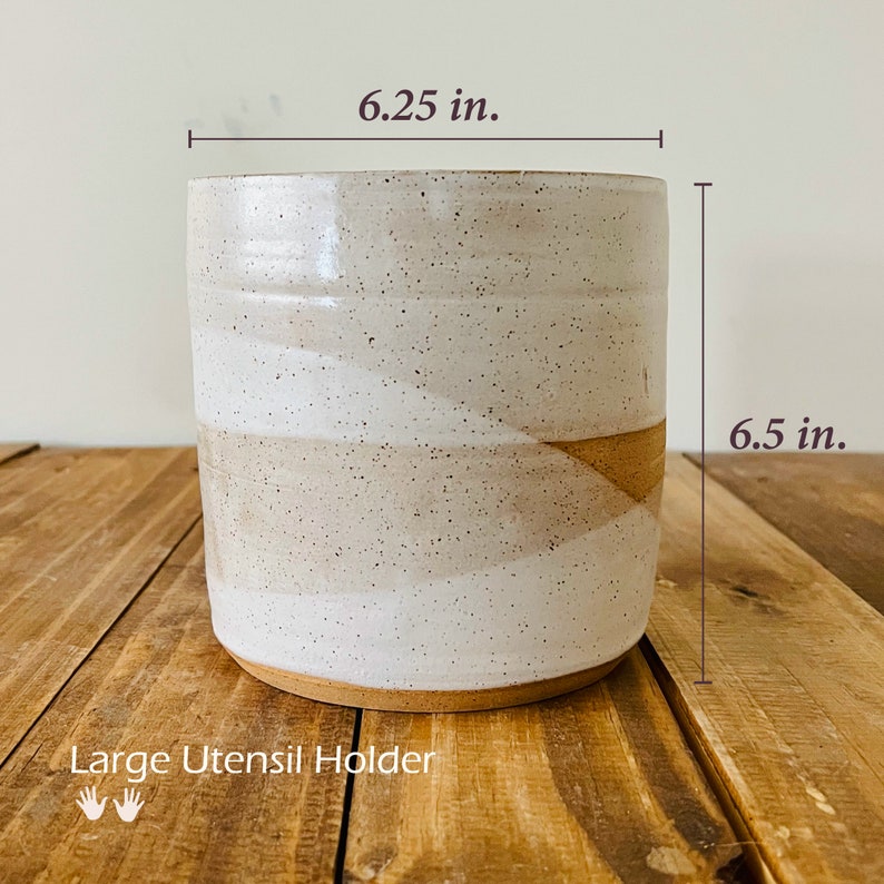 Handmade on the potter's wheel out of stoneware clay and finished with a rich, textured glaze. Great for use as a flower vase, kitchen utensil holder, and much more!