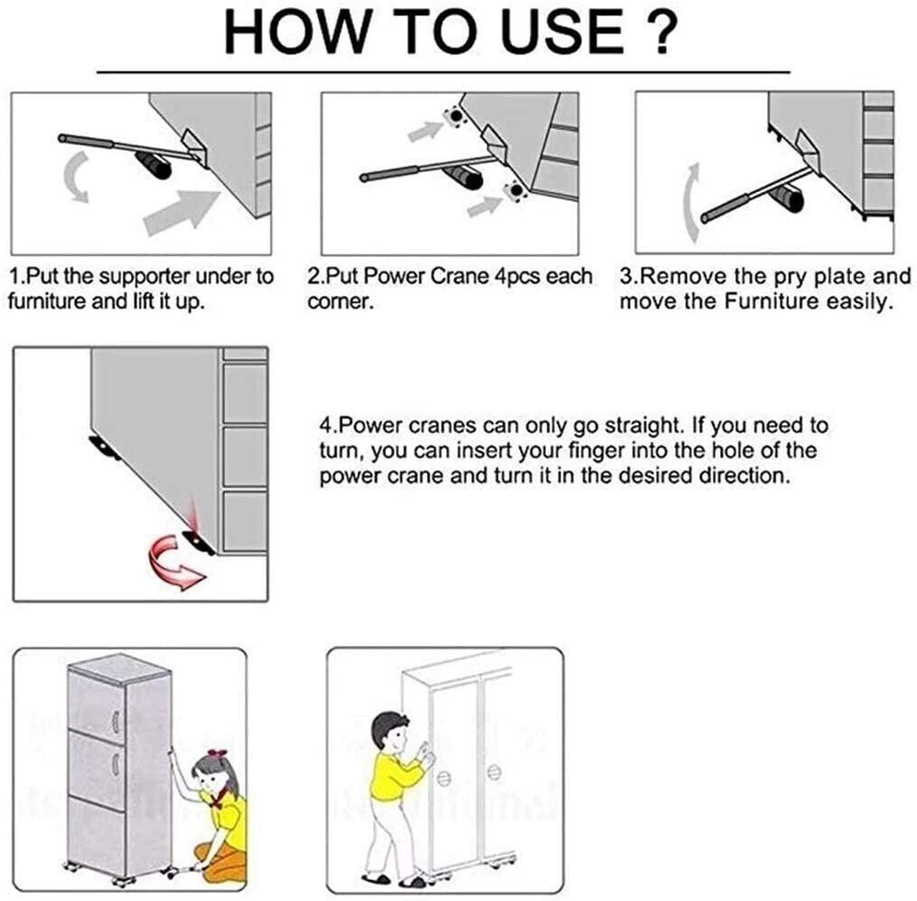 4 corner movers that doesn’t scratch floor and 1 nice looking wheeled lifter. If you are not Satisfied with your purchase, we will provide full refund.
