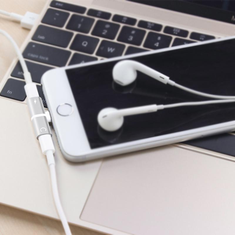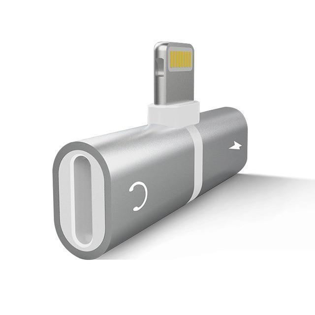 Our?Double-Threat Adapter lets you listen to music and charge your phone at the same time. The tiny attachment fits into your phone jack and offers ports for both your headphones and your phone charger. Perfect for iPhone 7 and above!
