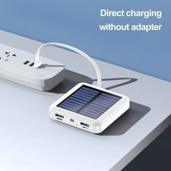 The Mini solar power bank comes with four lines, a bright LED flashlight.