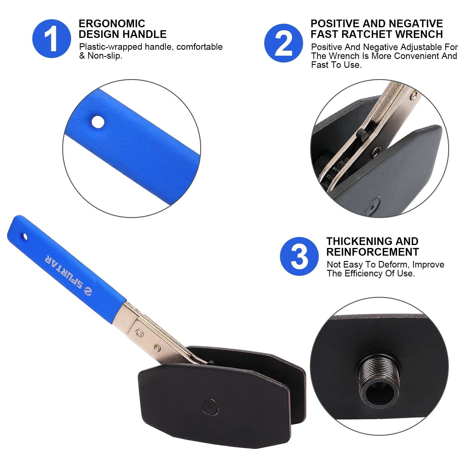 360-DEGREE RATCHETING: Ratchet technology of this Brake Caliper Compression Tool provides a 360-degree swing that allows you to keep the compression plates in place while you lever the handle back and forth to spread or retract the plates