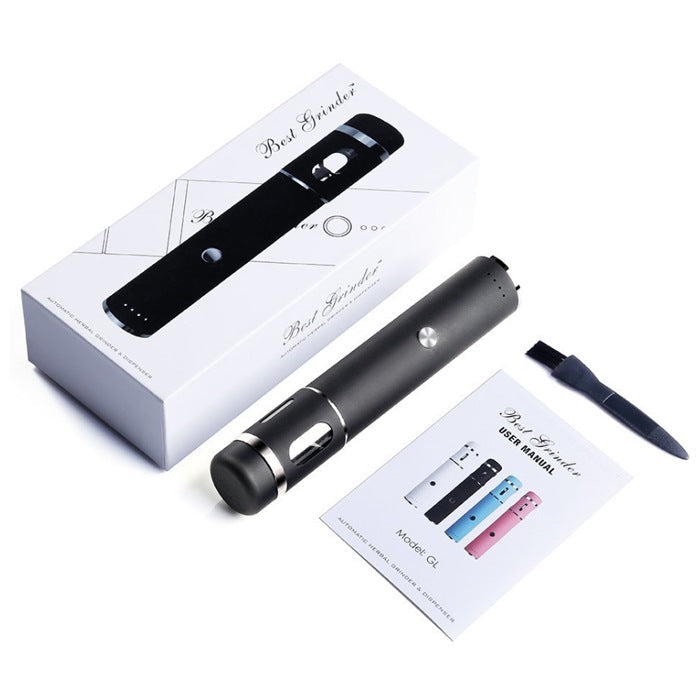 It contains 1 manual, 1 USB charging cable, and a high-quality electric cigarette grinder.