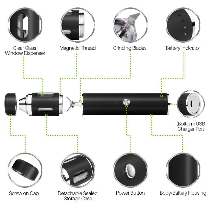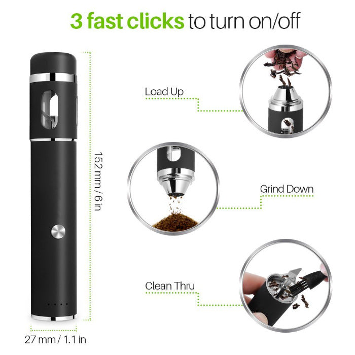 Certified Safe: The herb grinder will not operate when the stainless steel blades are exposed preventing injury. High-quality battery cells ensure complete protection.